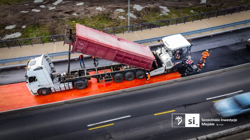 Wykonywanie mas bitumicznych to jeden z kluczowych etapów modernizacji obiektu, który stanowi przygotowanie do zakończenia głównych robót konstrukcyjnych i odtworzenia nawierzchni jezdni na aktualnie remontowanej części nitki wyjazdowej Trasy Zamkowej. Jednocześnie prowadzone są naprawy powierzchni betonowych podpór, ścian oporowych i przęseł. Wykonawca realizuje również prace przy betonowaniu płyty chodnikowej, montażu wpustów mostowych i dylatacji.