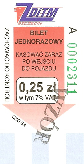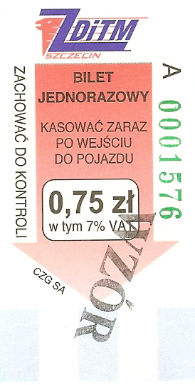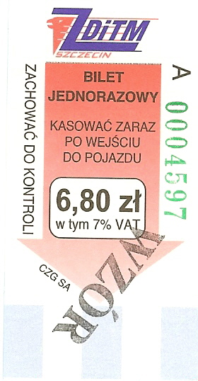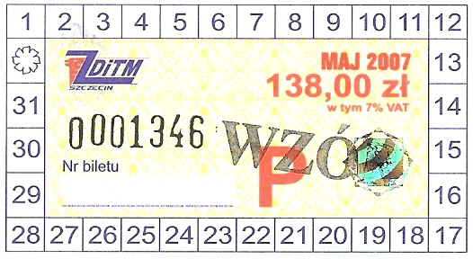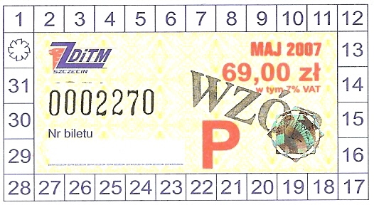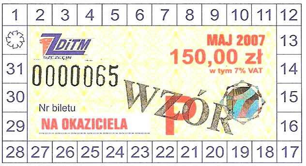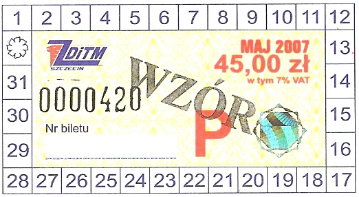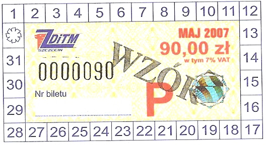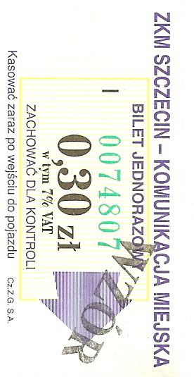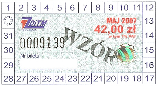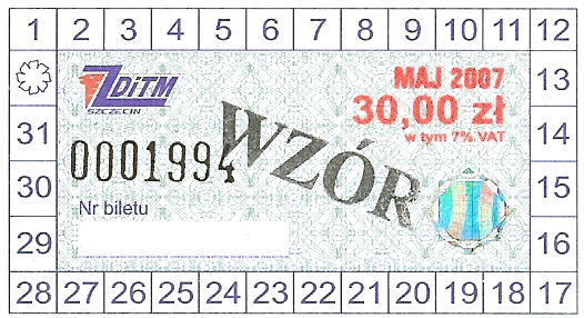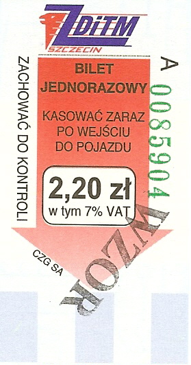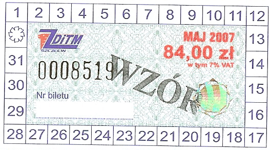 Bilety w komunikacji w 2007 rokuZgodnie z Uchwałą Rady Miasta o zmianie cen biletów prezentuję wzory aktualnych bieletów komunikacji miejskiej ważnych od 1 maja 2007 roku. Bilety jednorazowe