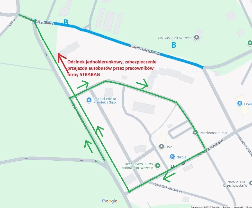 Prace drogowe związane z przebudową ul. Krzemiennej i Smoczej w Szczecinie w dniach 17 – 21 listopada 2025 roku wymusiły obsługę linii autobusowej 85 taborem kat. MIKRO.