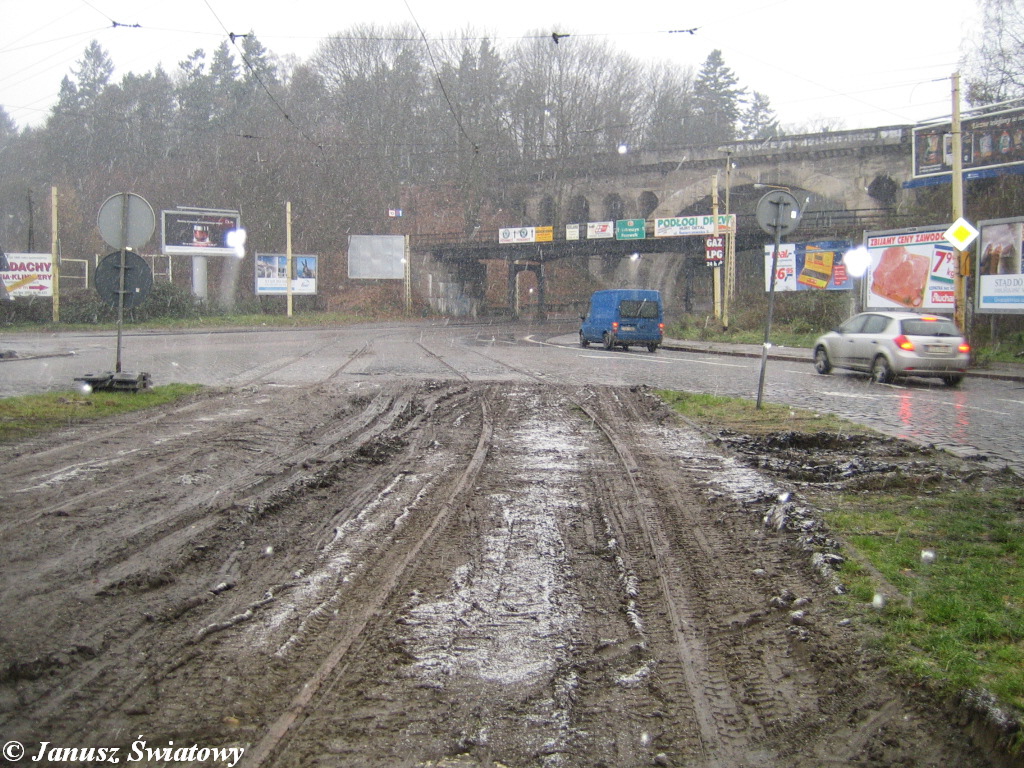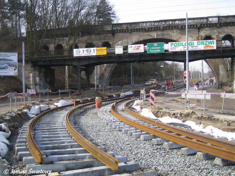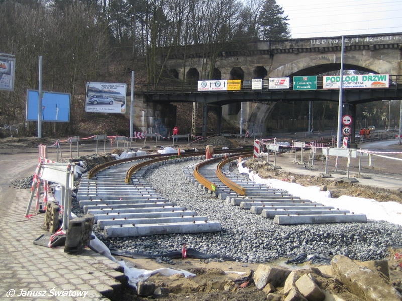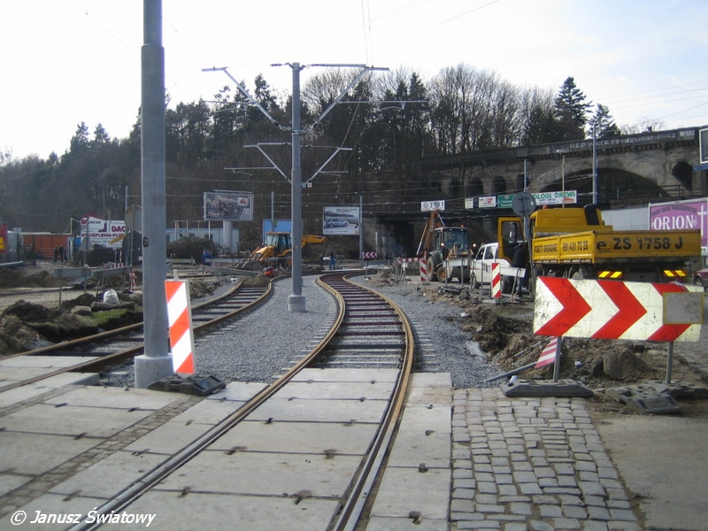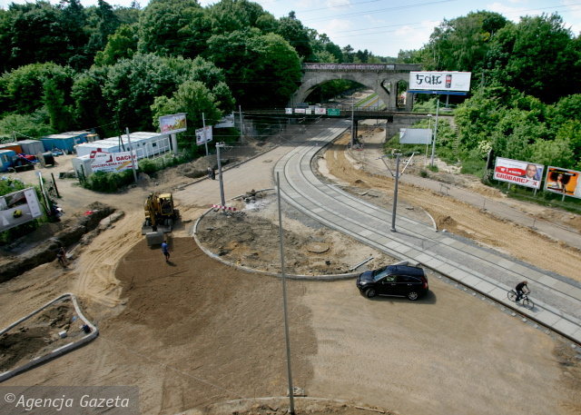W tej chwili wykonujemy drenaż, układane są sączki, kanalizacja torowiska - dodaje nasz rozmówca. Przygotowaliśmy też fundamenty pod słupy trakcyjne. Wykonawca zakłada, że jeszcze w marcu przez budowane rondo ruszą tramwaje. Jednocześnie zostanie zablokowany całkowicie ruch samochodowy pod wiaduktem. Co najmniej do czerwca.