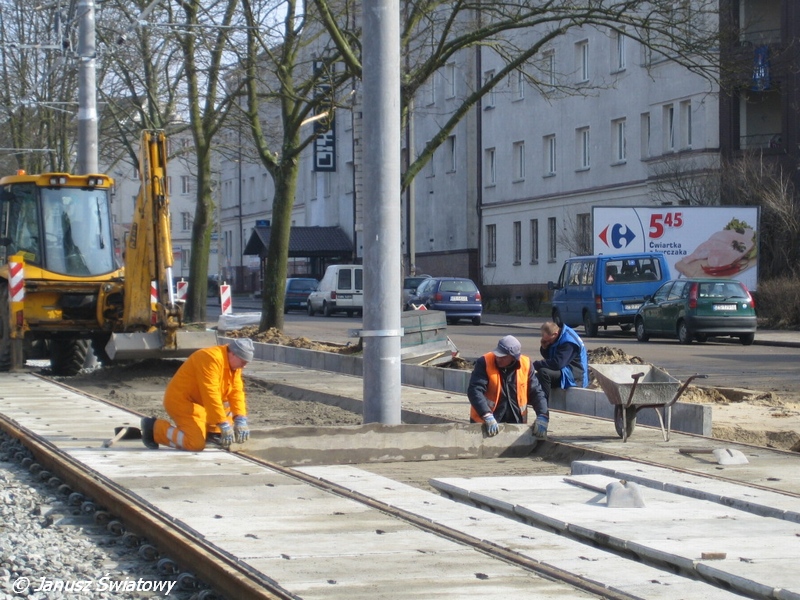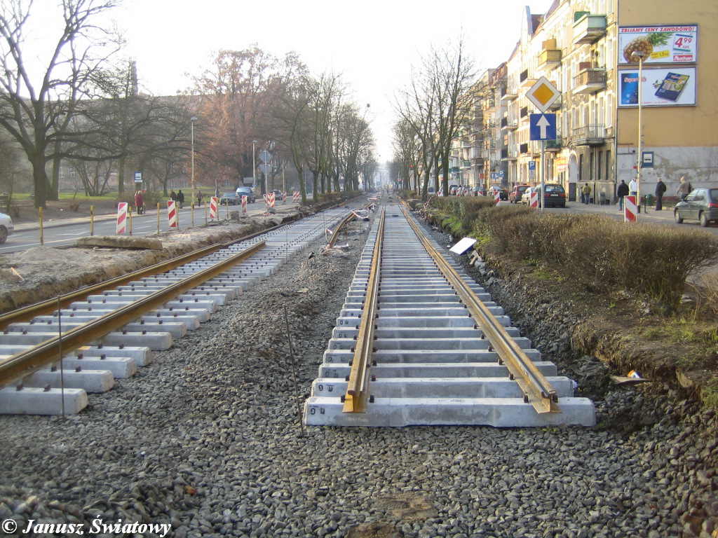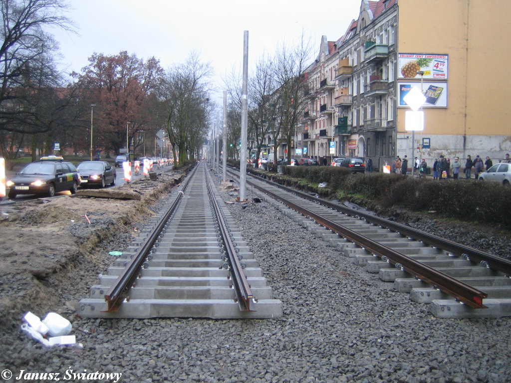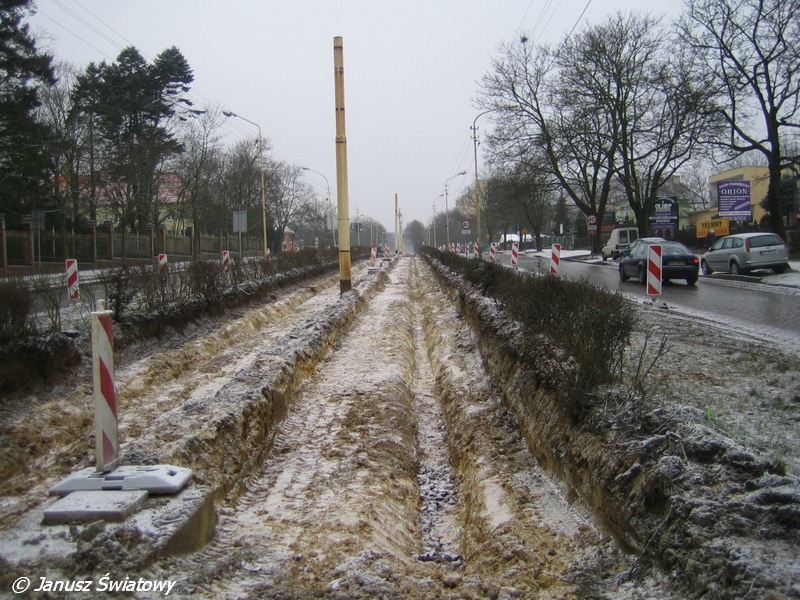 Zdjęcia niżej z dnia 9 listopada 2008 roku obrazujące stan prac przy odtworzeniu torowiska w ciągu ulicy Sikorskiego na odcinku od placu Kościuszki do ronda Ojca Siwka i od ronda do skrzyżowania ulicy Sikorskiego z Ku Słońcu.