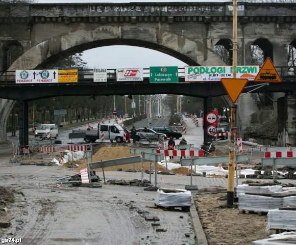 Musimy wymienić i przełożyć sieć wodociągową, gazową i cieplną - wyjaśnia przedstawiciel wykonawcy. Trzeba je wymienić na nowe. Rozkopane będą obie strony jezdni przy wiadukcie. Nie będzie więc tutaj przejazdu co najmniej do czerwca, choć teraz trudno sprecyzować czas potrzebny na wykonanie tych prac. Przypominamy o objazdach. Kierowcom zmierzającym do centrum na rondzie Gierosa radzimy jechać ul. Europejską, przez rondo Uniwersyteckie, ul. Południową, Mieszka I, al. Piastów i ul. Narutowicza. I odwrotnie.