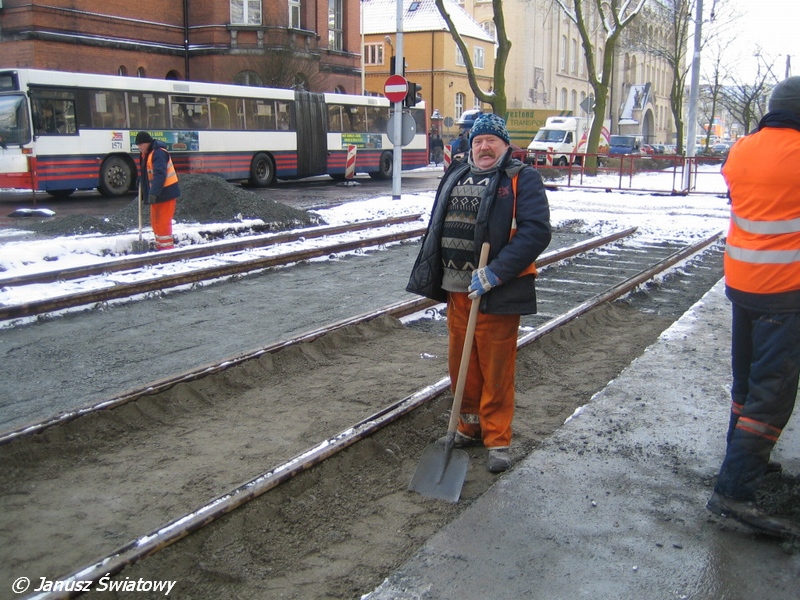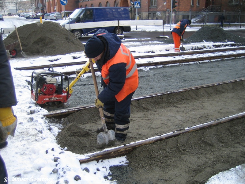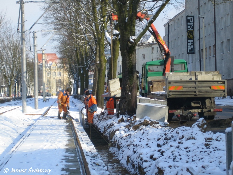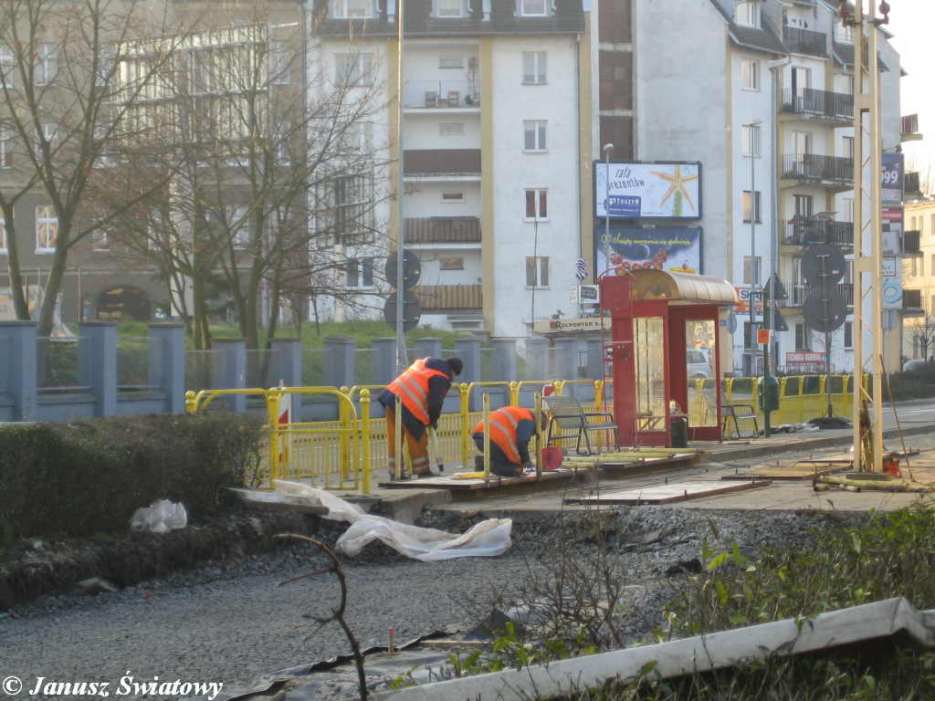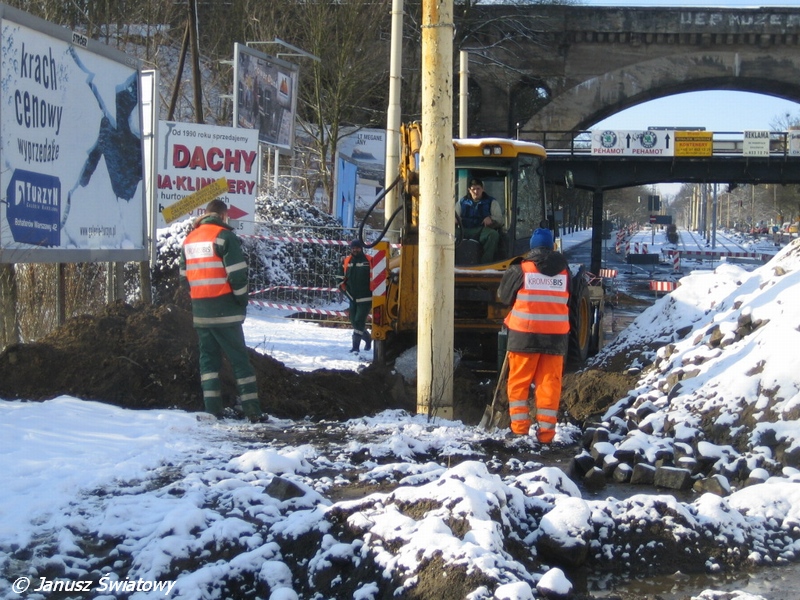Brygadom MPK Łódź w pracy przeszkadza niska temperatura i opady śniegu. Nie mogą wykonywać prac, dla których reżim technologiczny wymaga temperatury powyżej plus pięciu stopni tzn. wylewania fundamentów pod nowo stawiane słupy trakcyjne. Również nie wykonano prac wykończeniowych takich jak: obrzeży torowisk, peronów przystankowych czy odwodnienia.