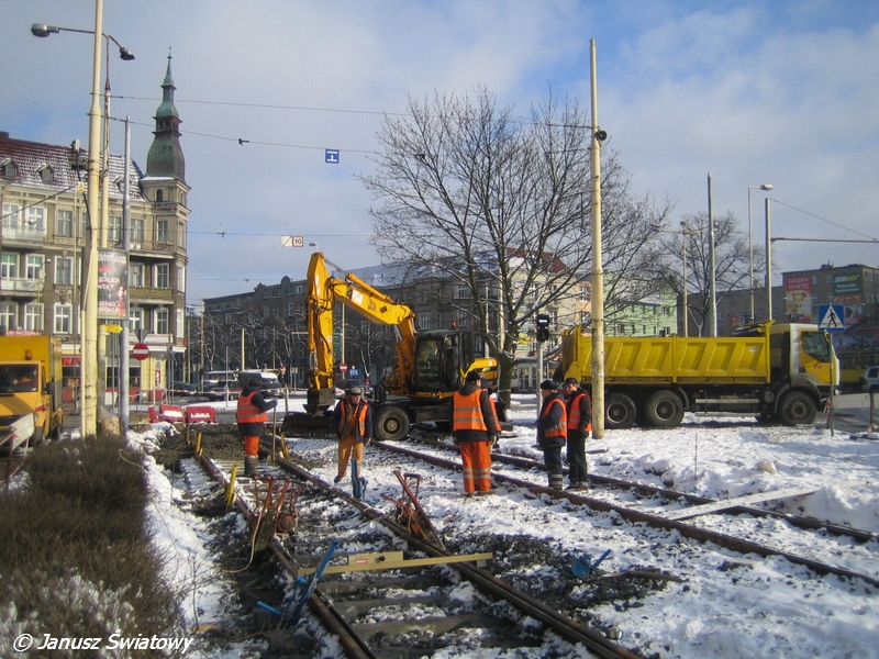 Czasowa organizacja ruchu nie są jeszcze ustalona - mówi Wypych. Poznamy ją najprawdopodobniej w ciągu trzech tygodni. Rondo musi powstać do 28 lutego. W marcu nowym torowiskiem mają pomknąć tramwaje.