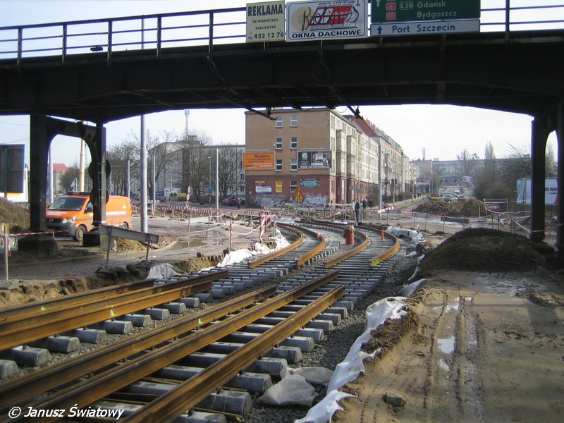 Jerzy Geniusz z Energopolu Szczecin informuje, że przez najbliższe dni wykonawca będzie układał tory na budowanym rondzie.