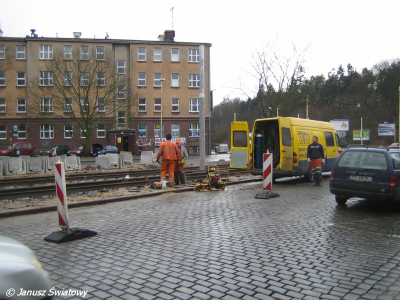 Choć wykonawca inwestycji - szczeciński Energopol - już tydzień temu przejął plac budowy, roboty się nie zaczęły. Trwają rozmowy z policją w sprawie tymczasowej organizacji ruchu. Kiedy się zakończą - nie wiadomo, ale na pewno do nowego roku nic się na krzyżówce nie zmieni. Pozostawiamy dojazd do cmentarza, bo na pewno ruch w czasie świąt będzie tu większy - mówi Tomasz Granops, inżynier kontraktu. Roboty budowlane rozpoczniemy 15 stycznia. Najpierw rozbierzemy stare torowisko.