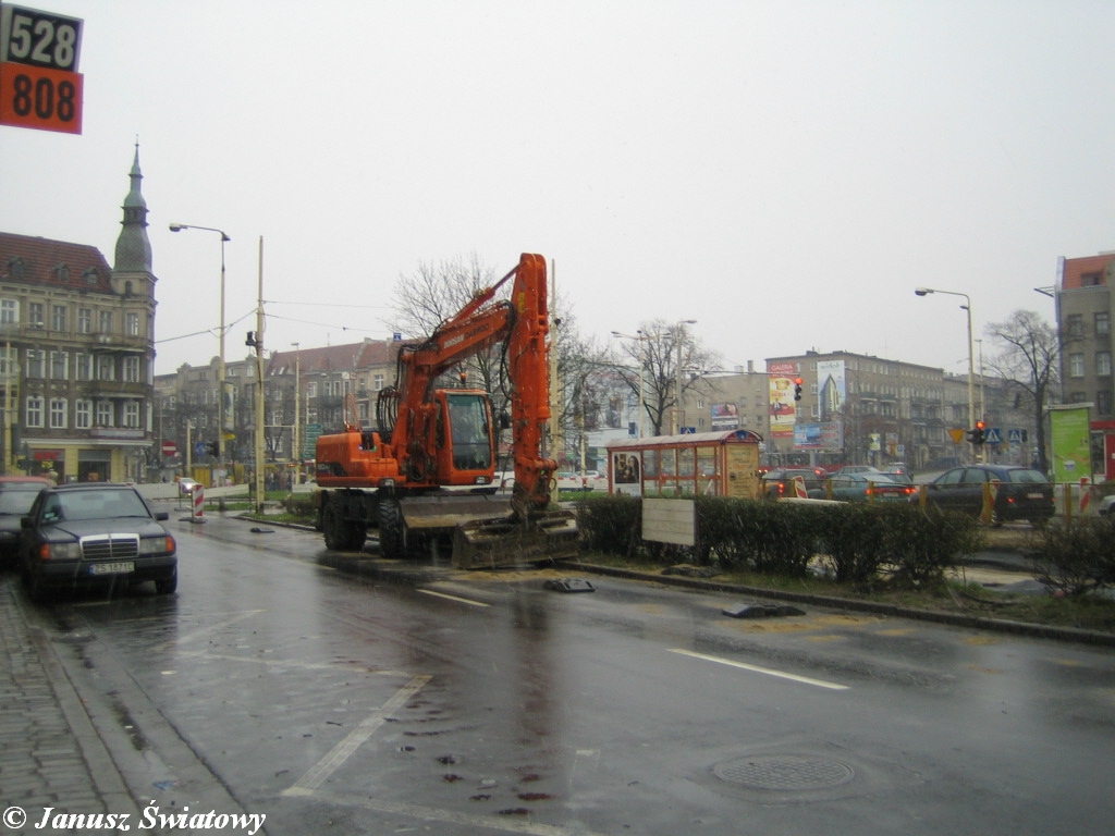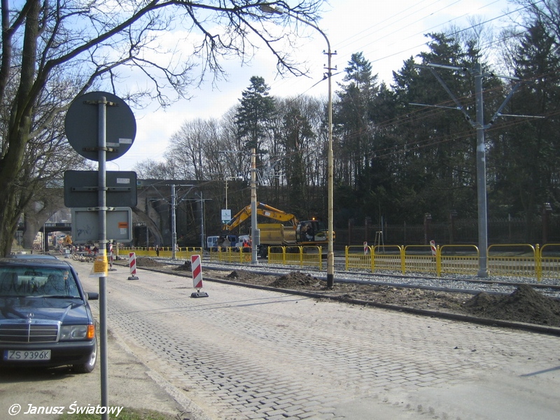 Chodzi o rondo, które powstanie w miejscu obecnego skrzyżowania ul. Ku Słońcu z Sikorskiego. Wykonawca, szczeciński Energopol, przejął plac budowy 10 grudnia, jednak do tej pory nie rozpoczął prac. Przeszkodą są spory wokół tymczasowej organizacji ruchu. Energopol wnioskował o całkowite zamknięcie rejonu robót. Zarząd Dróg i Transportu Miejskiego nie zgadzał się na wycofanie kursów autobusów linii 808 jeżdżących zamiast tramwajów.