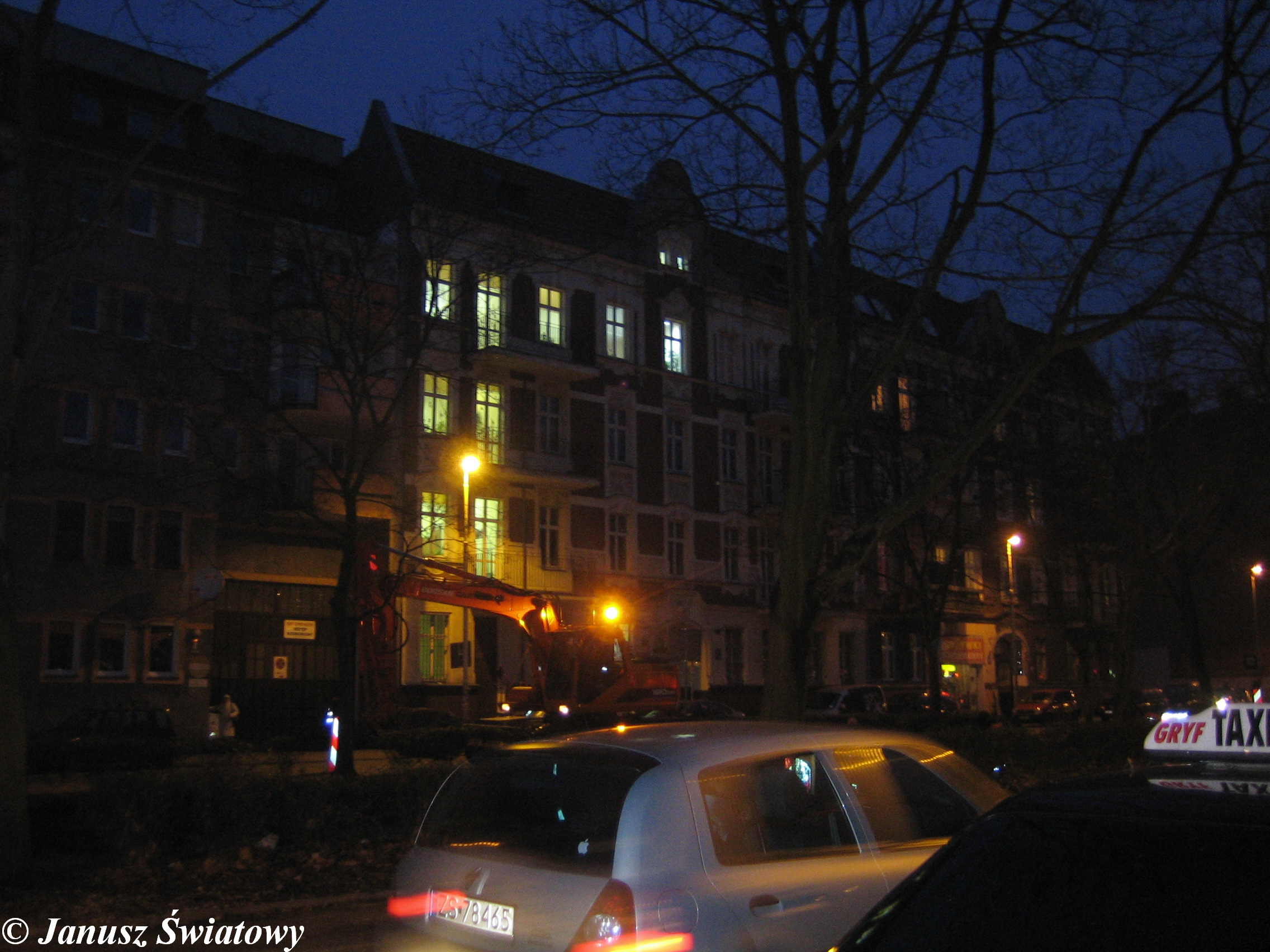 Ulica Sikorskiego - stan zaawansowania prac. Zdjęcia z 4 - 6 grudnia 2008 roku. Prace trwają nawet po zapadnięciu zmroku. Brygady MZK Łódź śpieszą się z oddaniem tego odcinka. Czeka ich jeszcze mnóstwo pracy w innych miejscach trasy ósemki.